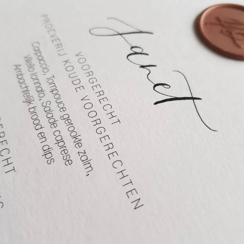 Wij leveren graag maatwerk! Ook in de webshop zijn mooie producten te vinden zoals wenskaarten, menukaarten, tafelschikking, welkomborden enzovoorts.